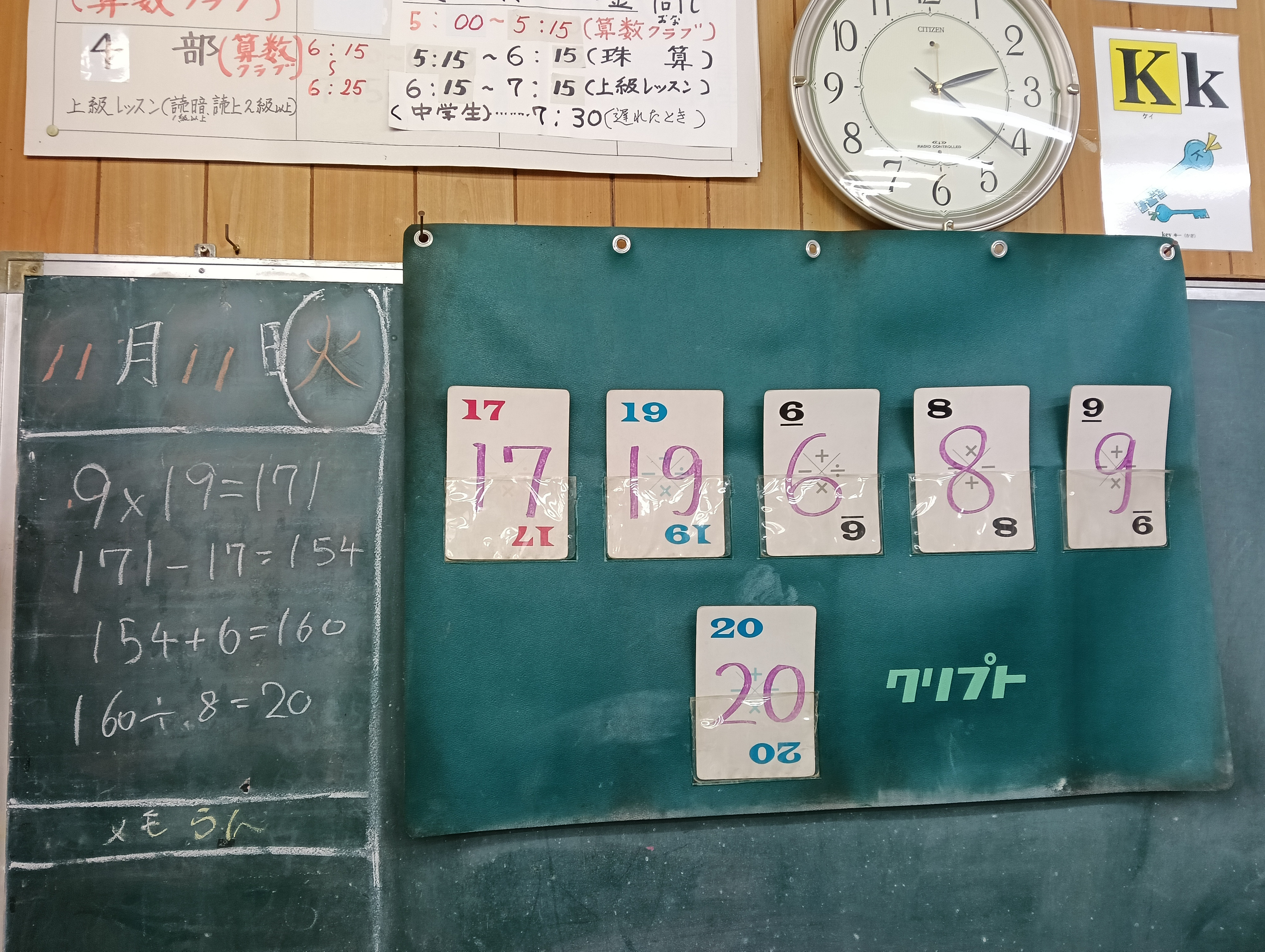 1回は必ず使い四則演算をして下のカードの「20」を作ります。出た答えに次のカードを使い